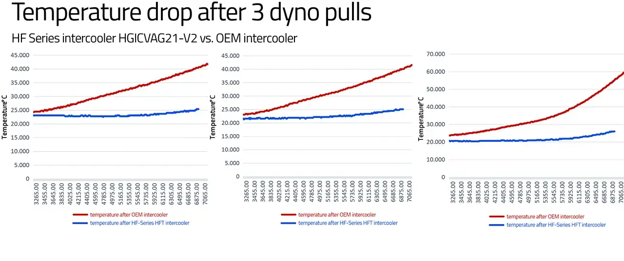 HF-Series Intercooler je visokozmogljiv hladilnik zraka, zasnovan posebej za motorje VAG 1.8/2.0 TFSI EA888 Gen.3. Ta intercooler prinaša bistveno boljše hlajenje stisnjenega zraka, kar povečuje učinkovitost motorja, zmanjšuje toplotno obremenitev in preprečuje izgubo moči pri zahtevnih pogojih vožnje.